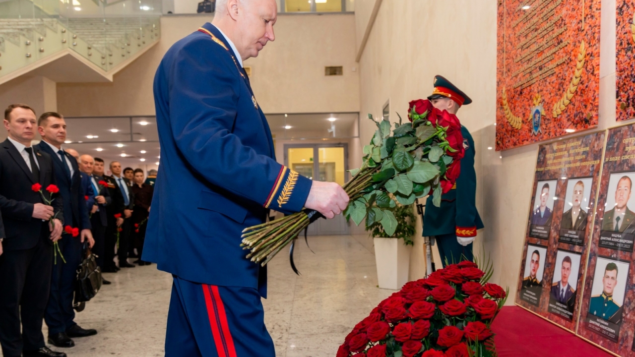 Перед началом мероприятия состоялось возложение цветов у мемориальной Доски памяти сотрудников Следственного комитета, погибших при исполнении служебного долга.