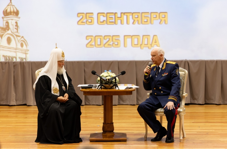 Поблагодарив за интересную дискуссию, Председатель Следственного комитета России вручил Святейшему Патриарху Московскому и всея Руси ведомственную медаль «За заслуги». В свою очередь Святейший Владыка передал в дар Следственному комитету икону святого благоверного князя Александра Невского.